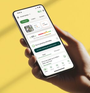 Kelby is Gardyn’s built-in plant intelligence system. It manages water delivery timing, light schedule optimisation by plant variety, health monitoring via camera and sensor data, and alerts when a plant needs attention.