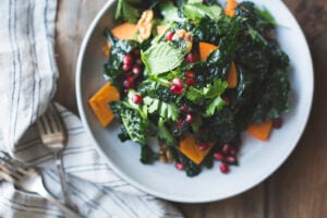 Kale is one of the more bioavailable plant iron sources because of its very low oxalate content. It is also a meaningful source of vitamin C — approximately 80mg per cup raw — which enhances absorption from its own iron content simultaneously.