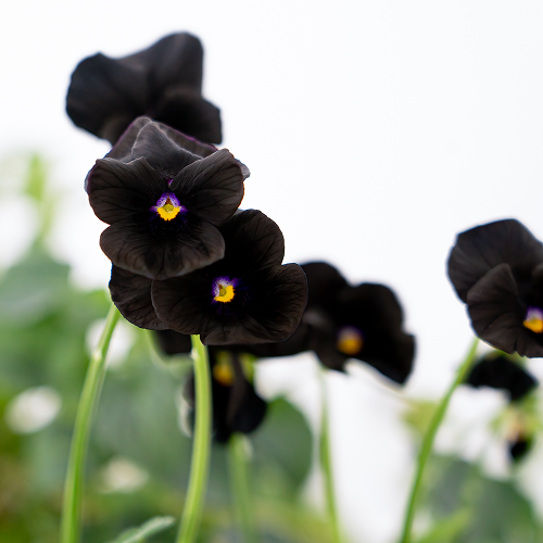 Violas are naturally compact plants with small flowers. This variety features green leaves with multi-petal blooms in a deep velvet black color that turns to violet surrounding bright yellow centers. Violas have a subtle, sweet flavor, making them a perfect and unique edible garnish. They are a source of vitamins A and C, and contain anthocyanins.